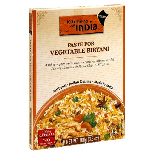 Kitchens Of India Curry Paste For Vegetable Biryani, 3.5-Ounce Boxes (Pack of 6) Kitchens of India curry paste boasts of hand-picked spices in just the right measure, artfully blended by the Master Chefs following rare, traditional recipes. Just add long-grained basmati rice and garden-fresh vegetables and cook. Serve, garnished with onions. Read more